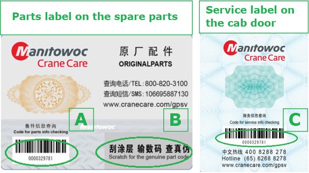 Manitowoc Crane Care encourages you to check whether your purchased parts are genuine and whether your crane is serviced by Manitowoc professional technicians. You can also view your crane service history and parts information by completing the following steps: