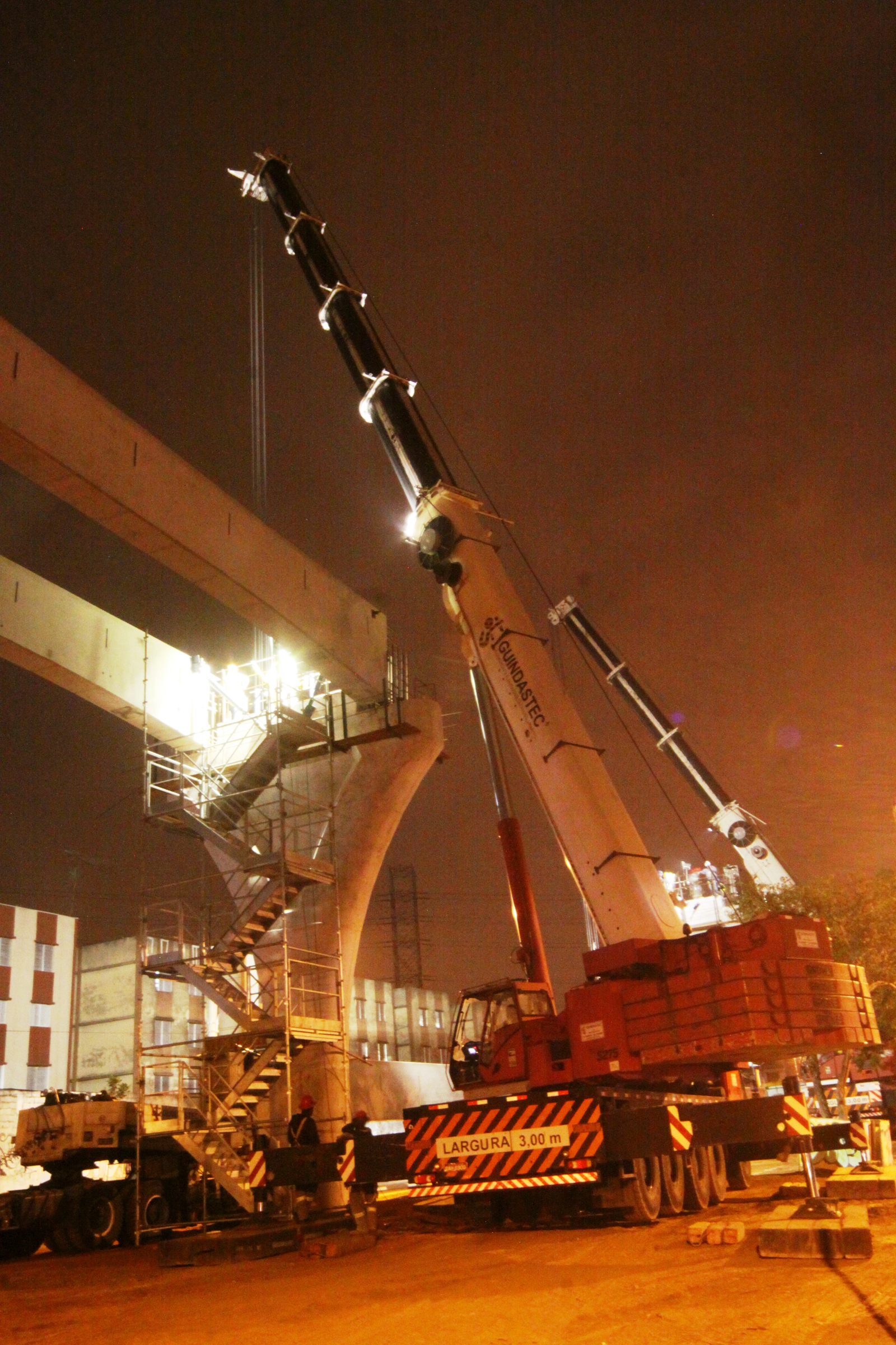 The first of three monorail lines is a 26 km connection from Villa Prudente to Cidade Tiradentes. In the first phase, which was scheduled to finish in September 2012, the GMK5220 will lay 400 concrete track beams. In phase 2, which will end at the close of 2013, the crane will lay approximately 1,600 more beams.
