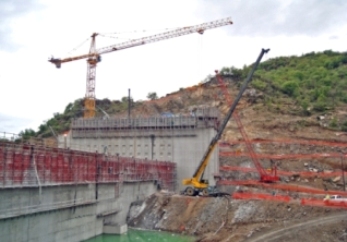 The Manitowoc cranes on the project are a mix of Potain tower cranes, a Manitowoc crawler crane and Grove mobile cranes. The cranes perform a variety of lifting tasks, which will change as the project progresses. But all work is related to constructing the outlet works of the dam, which will require 930,000 m3 of concrete to complete. Jobs include assembling conveyors and concrete batching plants, placing shuttering and reinforced steel, installing mechanical items in the outlet works, damage recovery and pouring concrete.