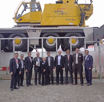 Celebrating the ESTA award for the Grove GMK6400. Manitowoc employees pictured left to right are: Eric Etchart, Gerhard Kaupert, Philippe Cohet, Jens Ennen, Astrid Hager-Guthrie, Renke Schlarmann, Andreas Cremer, Florian Peters, Holger Haber, Ingo Schiller.
